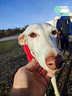 Da stand auf einmal dieser zutrauliche Galgo vor unserer (privaten) Tür. Der schon etwas ältere Rüde hatte weder Halsband noch Chip, dafür mächtig Hunger, viele Zecken und insgesamt kein sehr gepflegtes Erscheinungsbild, er war sicher eine ganze Weile unterwegs ...