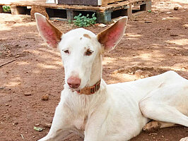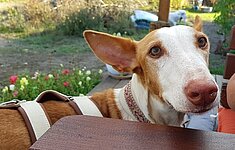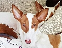 Sonstige Infos: aktive und aufgeschlossene Podenca - ihrem rechten Ohr fehlt die Spitze