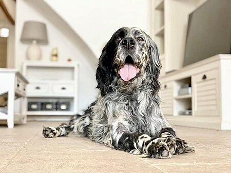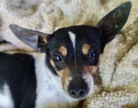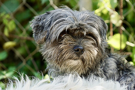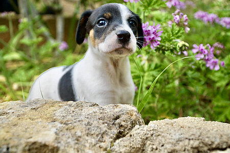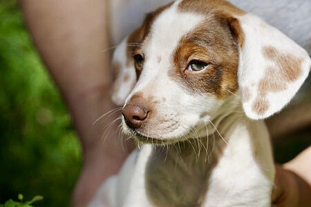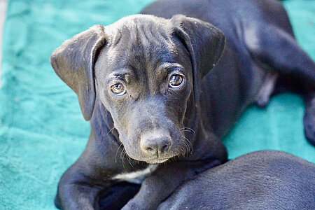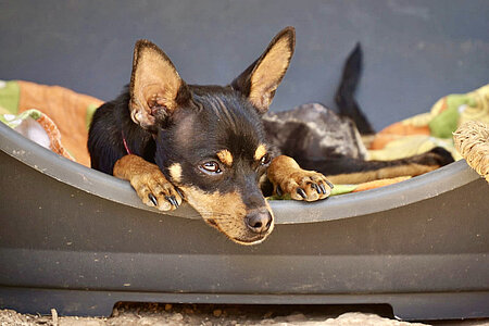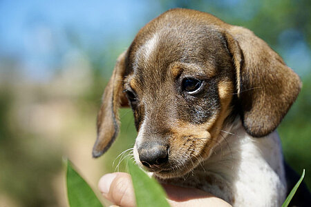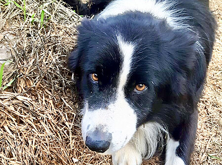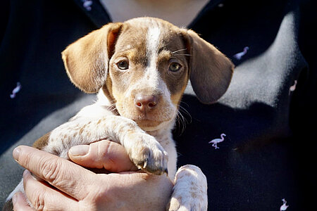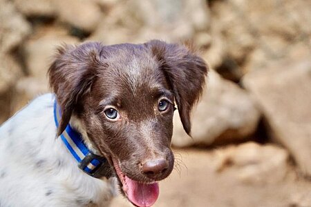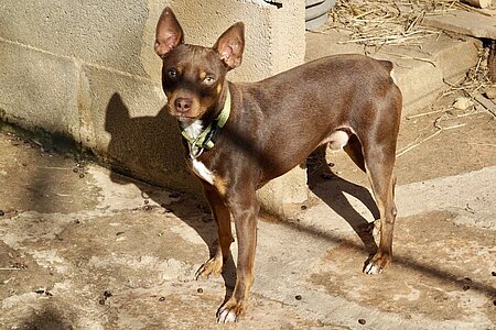 Sonstige Infos: sanft, verschmust, anhänglich, mit Katzen und Hühnern verträglich