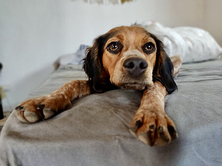 Sonstige Infos: verschmust, sozial, sensibel, menschenbezogen, vorsichtig und unterwürfig, möchte gefallen und lernen