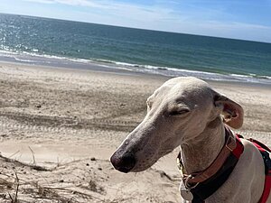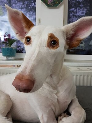 Hier kommt ELSA, unsere Eiskönigin! An die mussten wir jedenfalls sofort denken, als wir das anmutige junge Galgo-Mädchen mit dem strahlend blauen Auge zuerst sahen. ELSA ist aber nicht nur schön, sondern auch angstfrei, zutraulich zum Menschen und lieb und verspielt mit Hunden - ein Hauptgewinn! Wir schätzen sie auf ca. 1 Jahr.