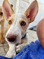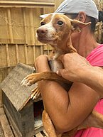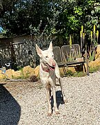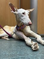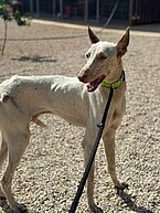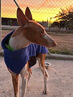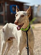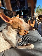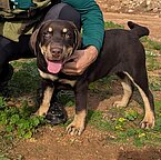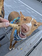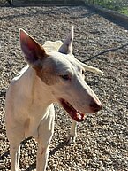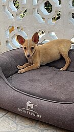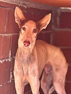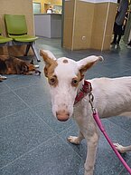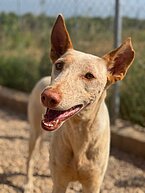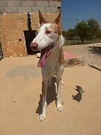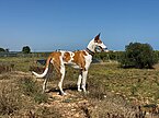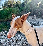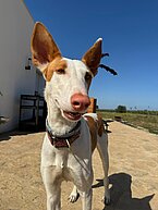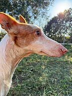 Seinen Namen hat er seiner "Augenklappe" zu verdanken: "PIRATA" ist ein freundlicher junger Ibicenco-Rüde von 1,5 Jahren und ca. 72 cm und wurde zum Ende der Jagdsaison aussortiert. Ob er zur Jagd nicht taugt, wissen wir nicht; aber an seinem Sozialverhalten kann es nicht gelegen haben: Er ist verträglich mit allem und jedem, mit groß und klein, und altersgemäß sehr verspielt. Anfangs zurückhaltend (er kennt halt noch nicht viel), taut er recht schnell auf. An der Leine laufen klappt mit etwas Übung auch immer besser. Beim Tierarzt benimmt er sich vorbildlich. Er ist putzmunter und auf Mittelmeerkrankheiten negativ getestet.