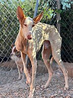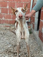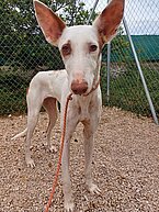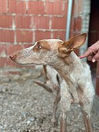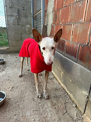 MONTANYESA ist eine ganz zutrauliche, ca. 5jährige, zierliche Ibicenca, die offenbar schon lange Zeit mit ihrem verunfallten Hinterlauf zurechtkommen muss - aber das tut sie fantastisch. Sie ist sehr mobil und blitzschnell.