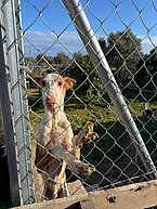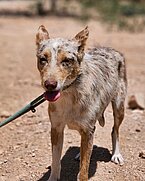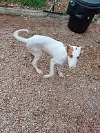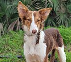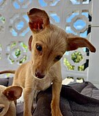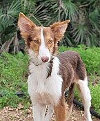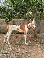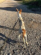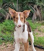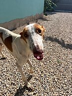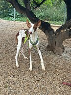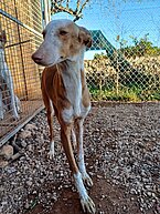 Xarnego Valenciano LASSIE (geb. Mai 24, also 10 Monate alt; derzeit 58 cm) ist nun seit 5 Wochen in Deutschland. Als Junghund ist er voller Energie und liebt es im gut eingezäunten Auslauf zu rennen und nach Mäusen zu suchen.
