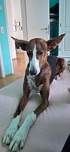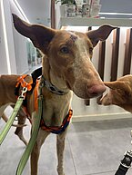 Kitty ist eine 6 jährige, ca. 68 cm grosse Podenco Ibicenco Hündin. Sie lebt sich gerade noch bei uns ein; nach den ersten Tagen können wir aber schon sagen, dass sie eine sehr brave Hündin ist. Am Anfang noch zurückhaltend, bindet sie sich aber schnell an ihren Menschen.Sie kennt noch nicht viel und ist in neuen Situationen deswegen noch unsicher. Kitty ist sehr sozial, verträglich mit großen und kleinen Hunden.
