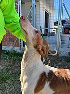bicenca BANDERA hatte mit ihren gerade mal zwei Jahren schon 4 Vorbesitzer - alle hat sie enttäuscht: Sie will einfach nicht jagen! Für unsere Breitengrade ist sie damit aber ein Glücksfall, denken wir (wobei das natürlich nicht heißt, dass da nicht doch etwas Jagdtrieb in ihr schlummert!)