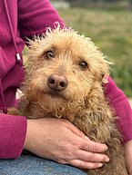 Die süße SUSI könnte ein Pudel- oder Wasserhund-Mix sein, wir schätzen sie auf 4-5 Jahre. Sie kommt aus sehr schlechter Haltung, fasst aber schnell Vertrauen. Wir schätzen sie als eine sehr unproblematische Begleiterin ein. Sie ist ca. 40-45 cm hoch.