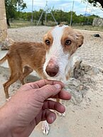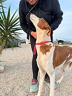 Die zarte, aber langbeinige LEILA sieht sehr edel aus. Der Podenco-Anteil ist offensichtlich, alles andere ist Spekulation. LEILA ist zurückhaltend, aber nicht wirklich ängstlich - so wie die allermeisten Podenco-Mixe, die in ihren ersten Lebensmonaten nicht genügend Menschen kennengelernt haben. Ein souveränder Ersthund würde ihr sicher guttun.