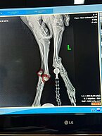 MONTAs rechter Hinterlauf konnte nach Abklärung mit Spezialisten nicht sinnvoll wiederaufgebaut werden und wurde deshalb am 20.11. amputiert.
