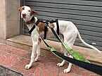 Schon als Junghund zog er sich eine schwere Verletzung am rechten Vorderfuß zu, sein Besitzer ließ ihn sogar operieren und hat ihn bis vor wenigen Tagen bei sich behalten, obwohl DYC so natürlich nicht mehr zur Jagd taugte. Nun gibt er die Hundehaltung jedoch altersbedingt auf und suchte einen neuen Platz für DYC.