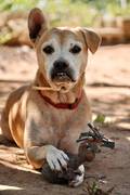 Diese süße Maus, eventuell eine gelungene Mischung aus Sharpei und engl. Bulldogge haben wir als Fundhund bekommen. Sie lief auf der Straße herum und kein Mensch hat sich für sie interessiert. Dabei ist sie so ein lieber Schatz und mag die Menschen sehr gern.