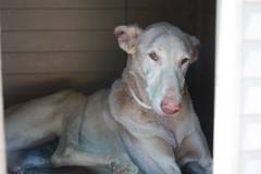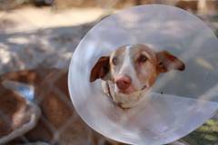 Schon seit zwei Jahren haben wir Podencos beobachtet, die ganz in der Nähe der Finca an der Kette leben. Endlich hat der Besitzer zugestimmt uns zwei der Hunde zu übergeben. Mit stark entzündeten Augen und voller Zecken haben wir gestern den Rüden und heute die Hündin bekommen. Er ist 9 Jahre alt, sie 8 Jahre alt.