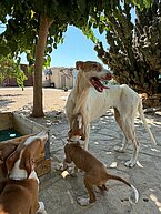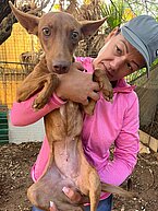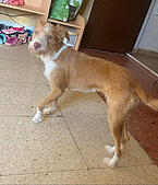 FLORECITA ist eine aus einem Wurf von 4 jungen und quirligen Podenco-Mixchen - 2 Buben und 2 Mädels -, die wir vor einigen Tagen aus der Tötungsstation geholt haben. FLORECITA ist die Frechste, aber auch die Kleinste mit aktuell 33 cm, dafür aber Überlänge - sie ähnelt im Format einem Maneto.