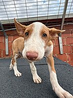 ESTRELLA ist eine aus einem Wurf von 4 jungen und quirligen Podenco-Mixchen - 2 Buben und 2 Mädels -, die wir vor einigen Tagen aus der Tötungsstation geholt haben. ESTRELLA ist ein zutrauliches, lebendiges kleines Mädchen.