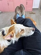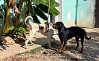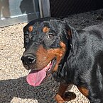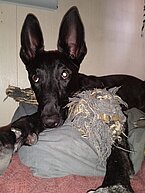 TRONSO ist ein Dobermann-Bretonen-Mix, wobei sich der Bretone optisch so gar nicht durchsetzen konnte. Er ist 4.5 Jahre alt, 55 cm hoch und ein schüchternes Schaf im Dobipelz - nur nicht gegenüber Schafen, die mag er nicht so. Ansonsten ist er sehr verträglich. Er kommt vom selben Jäger wie LOLO und ist auch bei uns mit ihm zusammen.