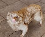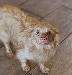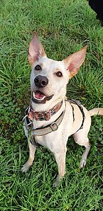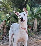 BLANQUITO ist ein Albino, aber nicht seh- oder hörbehindert. Er ist sehr freundlich und anhänglich.