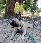 PATCHOU ist ein stattlicher Kerl von 30 kG auf 75 cm RH. Er nutzt seine Kraft nicht aus, trotzdem sollte man standfest sein. Insgesamt hat er einen sehr guten Charakter. Er ist super sozialisiert und verträglich mit großen und kleinen Hunden. Manchmal spielt er allerdings auch den Elefanten im Porzellanladen. In seinem bisherigen Leben hat er nicht sehr viel kennen gelernt, aber er ist aufgeschlossen und lernwillig.