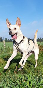 Aufgrund des Podenco-Anteils in seiner Ahnengalerie (derzeit können wir seinen Jagdtrieb noch nicht sicher einschätzen) sollte er die Möglichkeit haben, auf gesichertem Gelände rennen und spielen zu können.