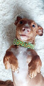 Mit ihren Artgenossen kommt sie prima zurecht, aber hat kein sonderlich großes Interesse an anderen Hunden. Sie liebt es mehr, bei ihren Menschen zu sein, gestreichelt und gekuschelt zu werden und die Welt gemeinsam zu erkunden.