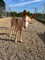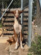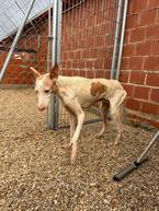 MONTANYESA ist eine ganz zutrauliche, ca. 5jährige, zierliche Ibicenca, die offenbar schon lange Zeit mit ihrem verunfallten Hinterlauf zurechtkommen muss - aber das tut sie fantastisch. Sie ist sehr mobil und blitzschnell.