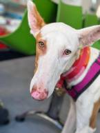 Seinen Namen hat er seiner "Augenklappe" zu verdanken: "PIRATA" ist ein freundlicher junger Ibicenco-Rüde von 1,5 Jahren und ca. 72 cm und wurde zum Ende der Jagdsaison aussortiert. Ob er zur Jagd nicht taugt, wissen wir nicht; aber an seinem Sozialverhalten kann es nicht gelegen haben: Er ist verträglich mit allem und jedem, mit groß und klein, und altersgemäß sehr verspielt. Anfangs zurückhaltend (er kennt halt noch nicht viel), taut er recht schnell auf. An der Leine laufen klappt mit etwas Übung auch immer besser. Beim Tierarzt benimmt er sich vorbildlich. Er ist putzmunter und auf Mittelmeerkrankheiten negativ getestet.